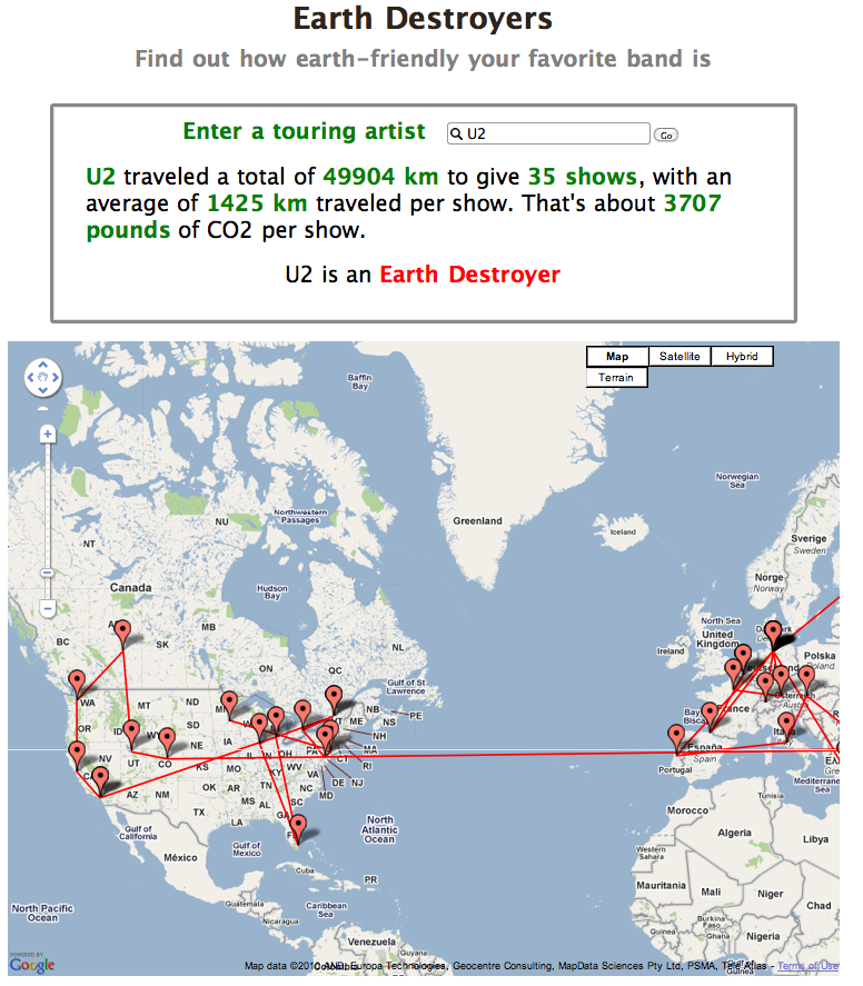 Earth Destroyers – this is my hack – it is a web app that tells you which bands have earth destroying tours.