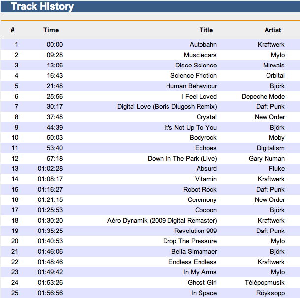 I don’t have too much electronica, but I like to listen to it, especially when I’m working. Let’s try a playlist based on the group that started it all.