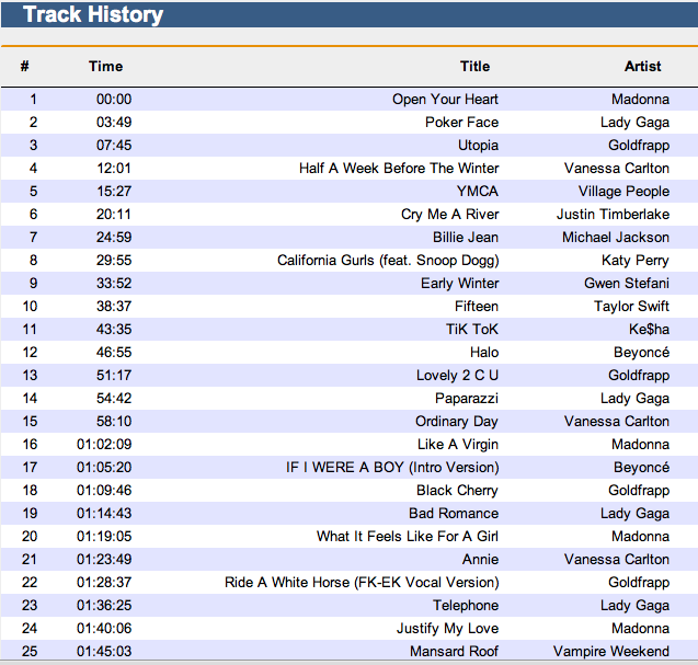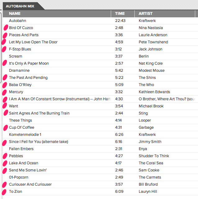 Another solid playlist, No WTFs. It is a bit more vocal heavy than the iTunes playlist. I think I prefer the iTunes version a bit more because of that. Still, nothing to complain about here: WTF Score: 0