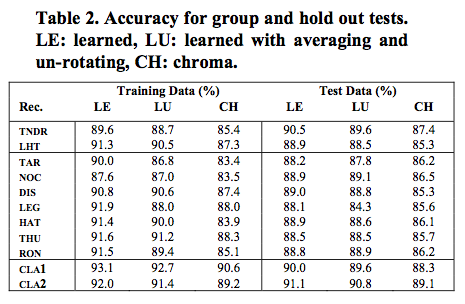 This paper gets the ‘Title that rolls off the tongue best’ award. I don’t understand all of the math for this one, but some notes – the wavelet-based features used, seem to be good at discriminating at the genre level. He compares the system to Doug Turnbull’s MixHier and to the system that we built at Sun labs with Thierry, Doug, Francois and myself (Autotagger: A model for predicting social tags from acoustic features on Large Music Databases)