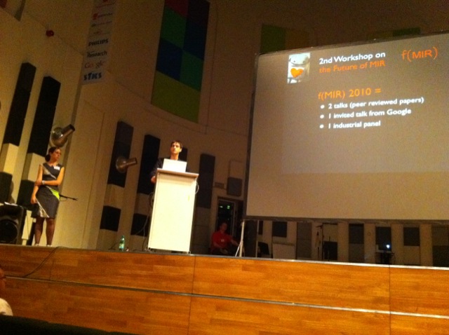 Dr. Downie gave a summary of MIREX 2010 – the evaluation track for MIR (it is like TREC for MIR). Results are here: MIREX-2010 results
