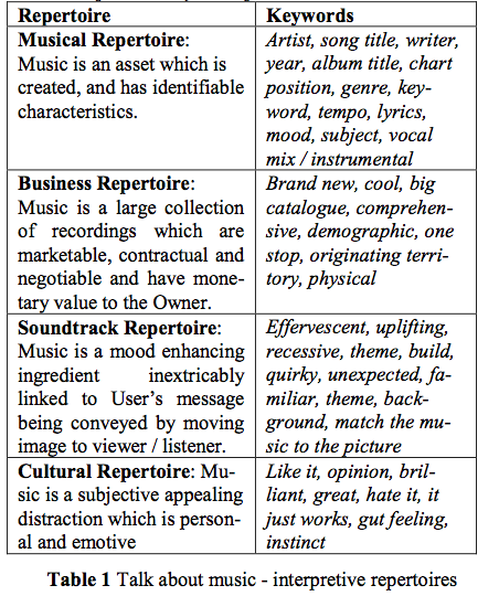 Upbeat and Quirky, With a Bit of a Build: Interpretive Repertoires in Creative Music Search
