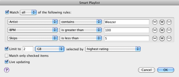 [tweetmeme only_single=false] iTunes Smart Playlists allow for very flexible creation of dynamic playlists based on a whole boat-load of parameters. But I wonder how often people use this feature. Is it too complicated? Let’s find out. I’ve created a poll that will take you about 20 seconds to complete. Go to iTunes, count up how many smart playlists you have. You can tell which playlists are smart playlists because they have the little gear icon: