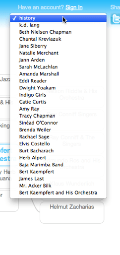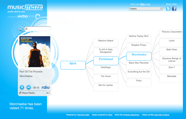 Full stream support with Rdio – the Music Maze now plays music from Rdio (the nifty new social music service). If you are a subscriber to Rdio, (even a free trial subscriber), you can listen to full songs in the new Music Maze. If you are not a subscriber, you get 30 second samples. Working with the Rdio player was a breeze. It was easy to embed and it gives you lots of information about the tracks, making it easy to create a rich listening experience. Note that one downside of this full stream support is that since Rdio is currently a US only music service. The Music Maze won’t play in non-US locales.