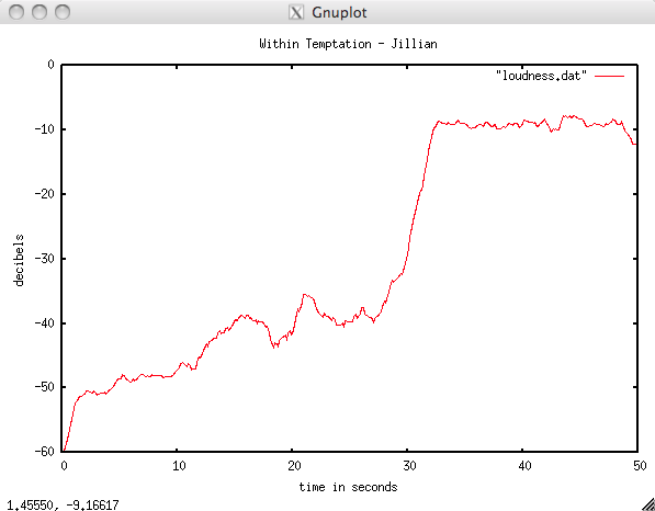 This extreme change in energy makes for a very dramatic moment in the music. It is one of the reasons that I listen to progressive rock and nu-metal (despite the mockery of my co-workers). However, finding these dramatic gems in the music is hard – there’s a lot of goth- and nu-metal to filter through, and much of it is really bad. After even just a few minutes of listening I feel like I’m lost at a Twicon. What I need is a tool to help me find these dramatic moments, to filter through the thousands of songs to find the ones that have those special moments when the beauty comes eye to eye with the beast.