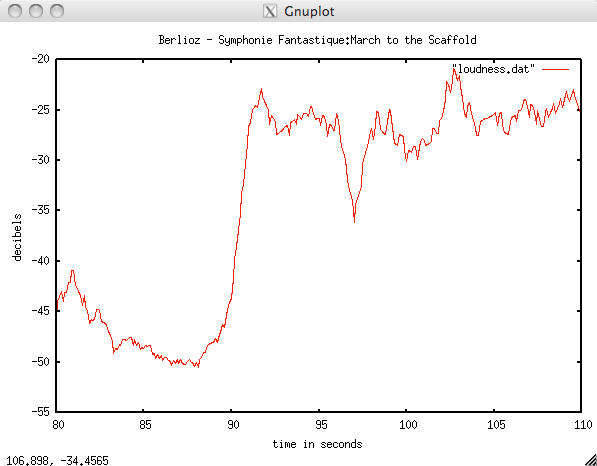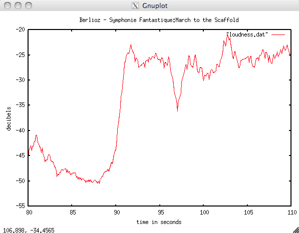 Update: @han wondered how well the dramatic detector faired on Romantic-era music. Here’s a plot for Berlioz’s Symphony Fantastique: March to the Scaffold: