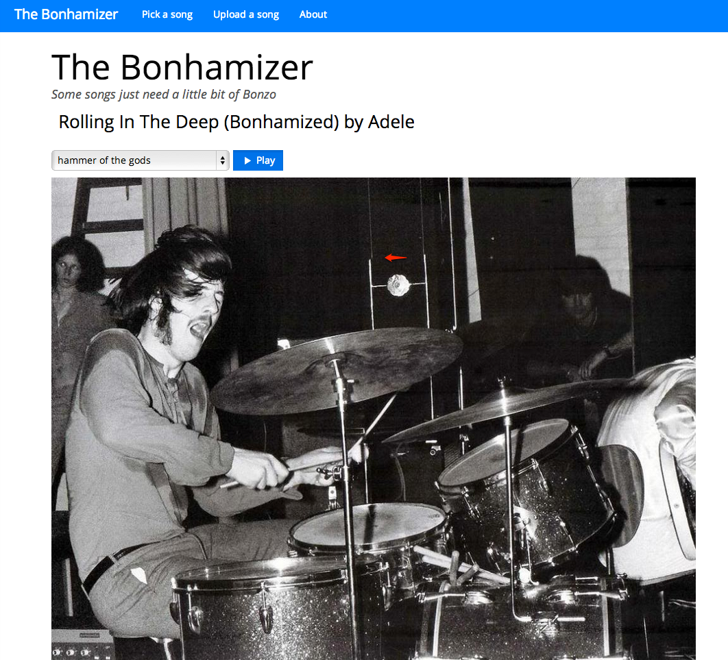 My weekend hack is called The Bonhamizer. It takes just about any song and re-renders it as if John Bonham was playing the drums on the track. For many tracks it works really well (and others not so much). I thought I’d give a bit more detail on how the hack works.