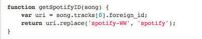 var artist_id = artist.uri.replace('spotify', 'spotify-WW');